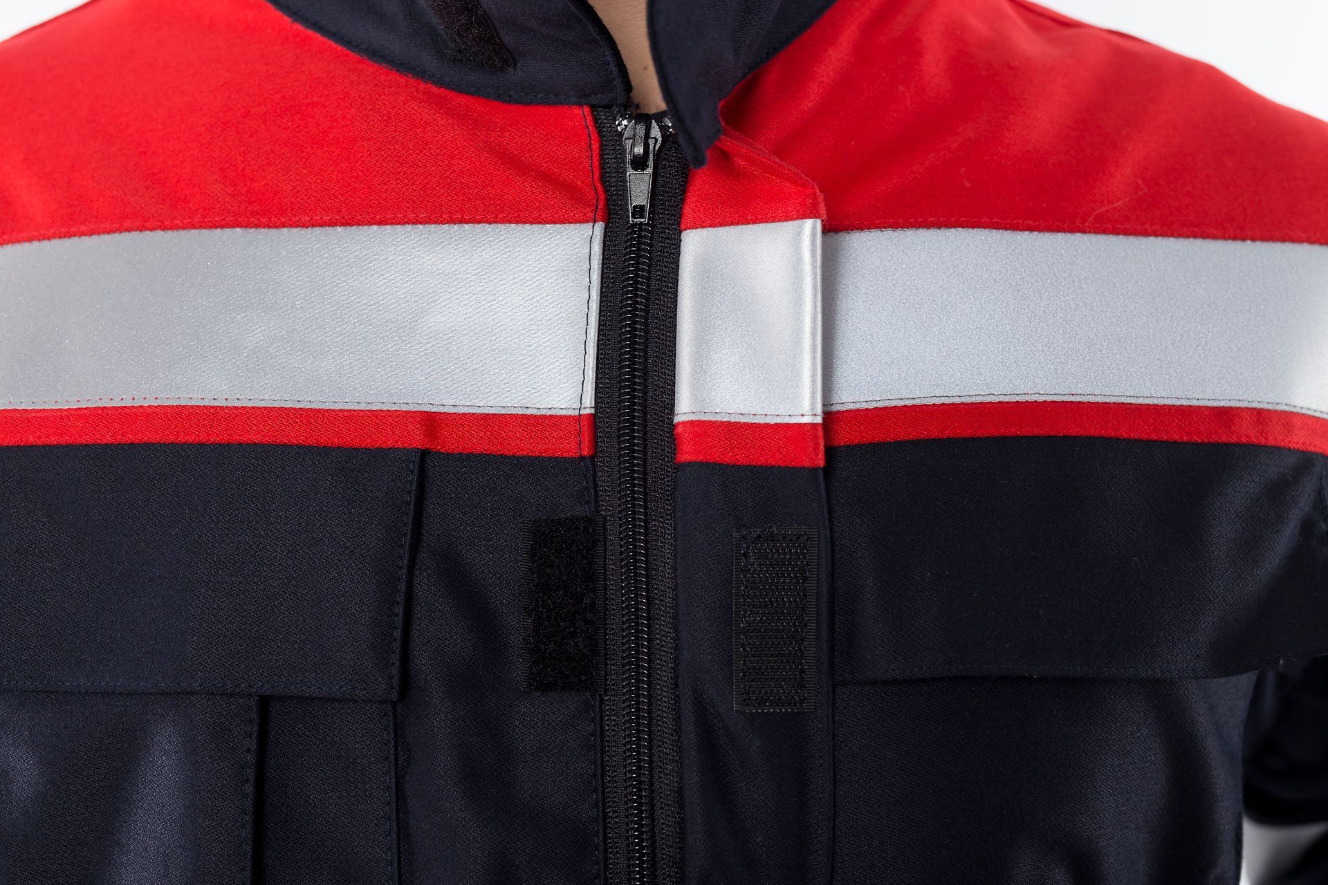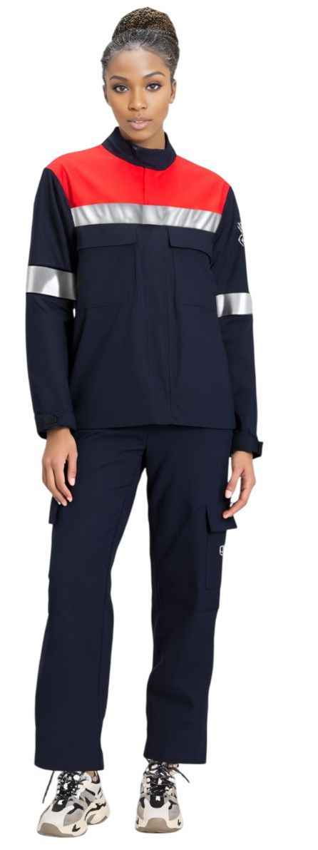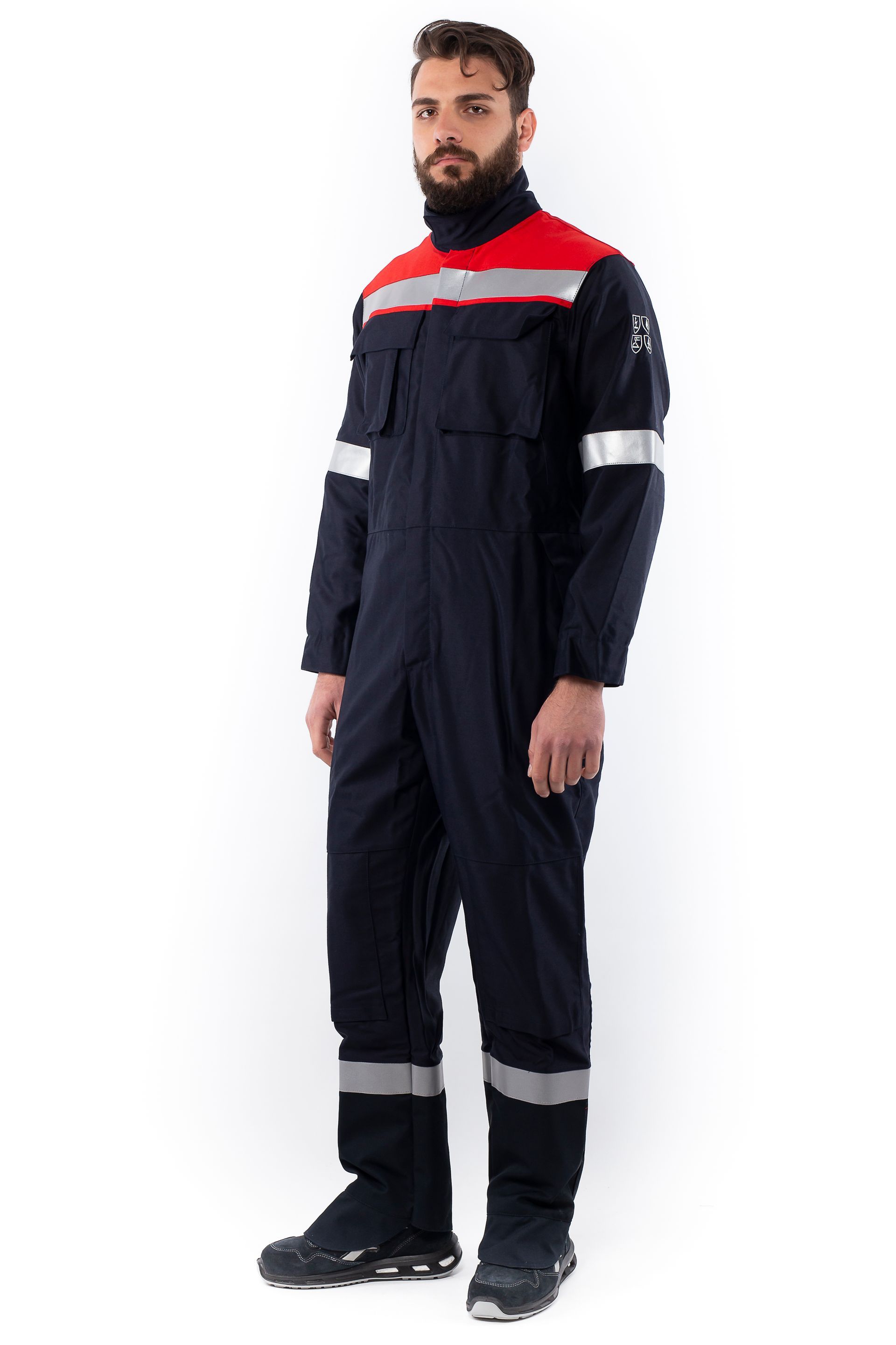 Tessuto traspirante, antifiamma, antistatico, anti schizzi metalli fusi e anti arco elettrico. Il design ergonomico, i tessuti utilizzati e le bande catarifrangenti garantiscono visibilità in ambienti poco illuminati, comfort e mobilità anche in caso di utilizzo prolungato. Cuciture, tasche e accessori interamente certificati e progettati per aumentare la funzionalità del capo.